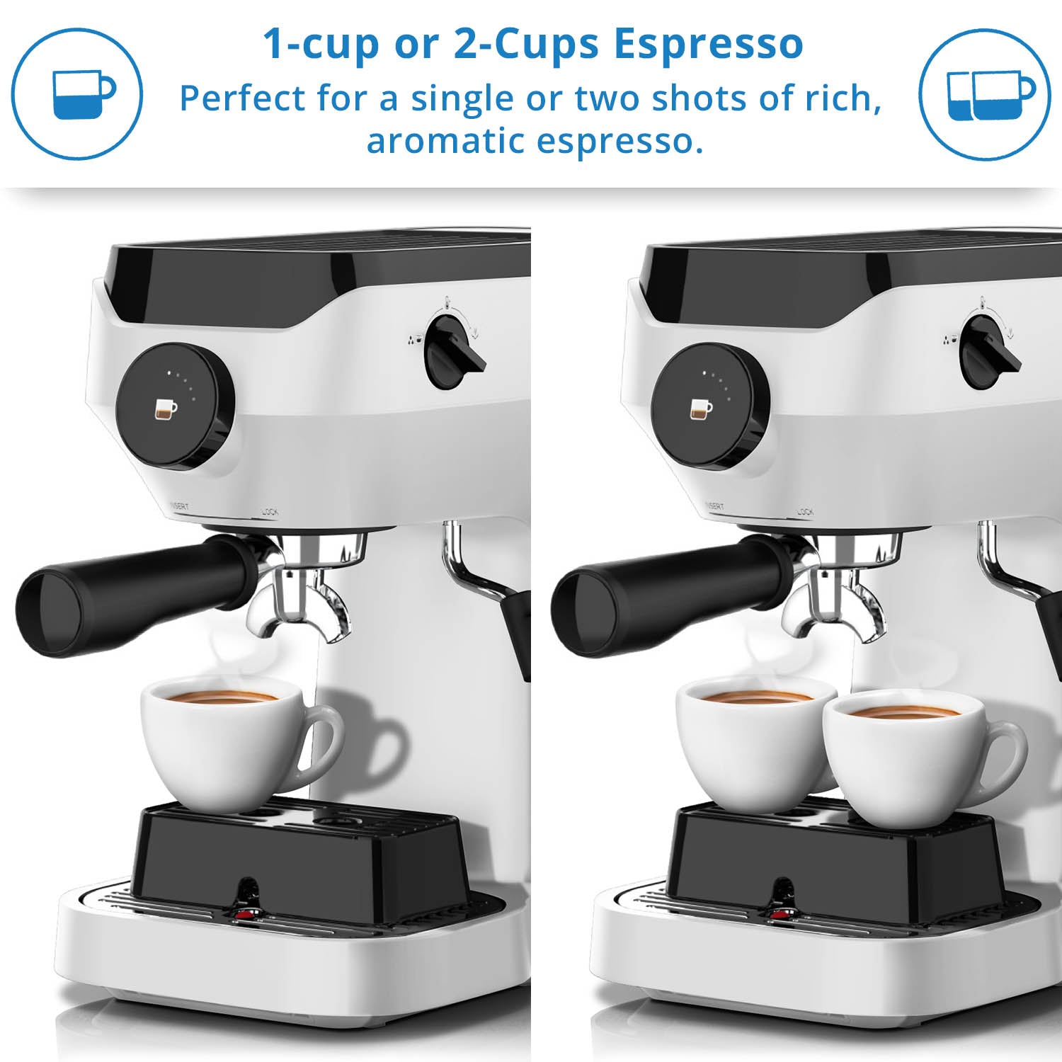 Comes with dual stainless steel filters for 1-cup and 2-cup shots, letting you enjoy a single espresso or a double shot effortlessly.