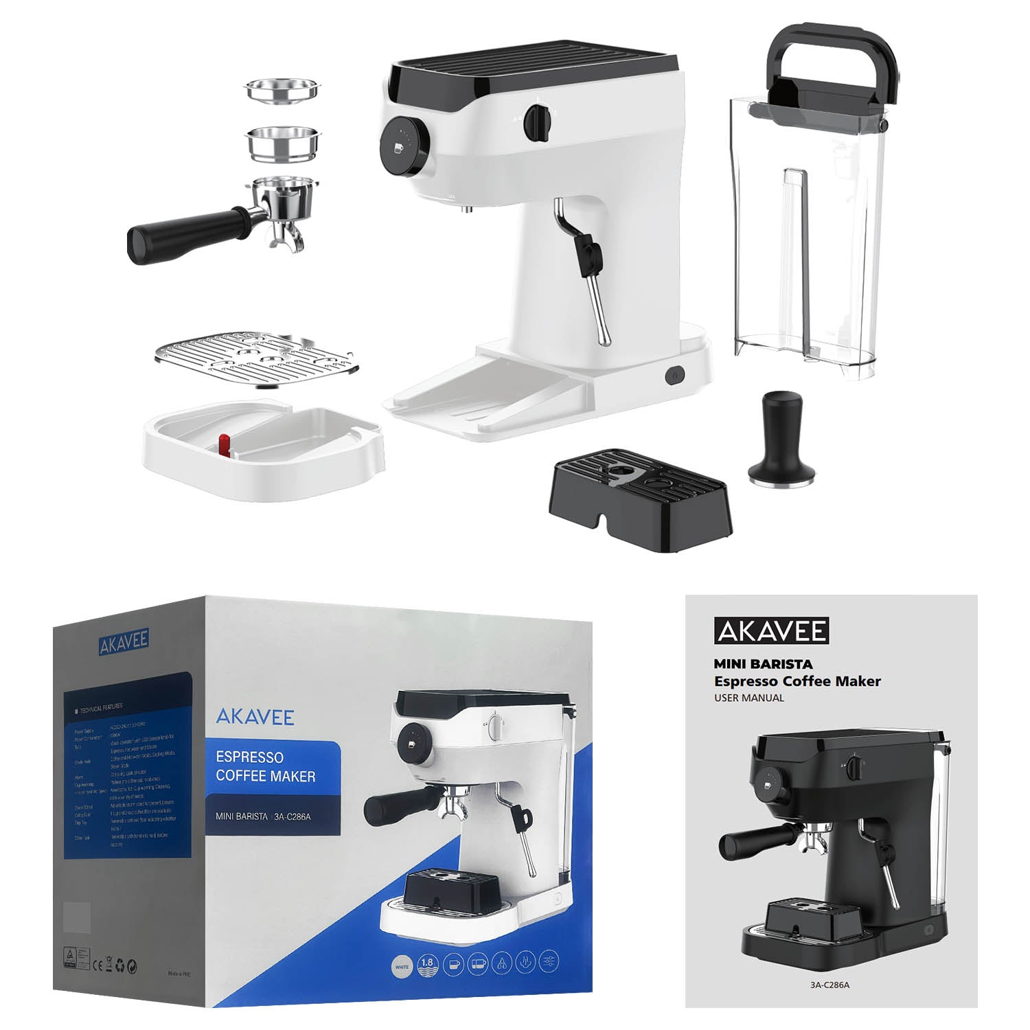 Includes all essential accessories for barista-style coffee at home: Coffee Machine, Portafilter, 1-Cup and 2-Cups Filters, Tamper, Small Cup Tray, and User Manual—ready to start brewing right out of the box.