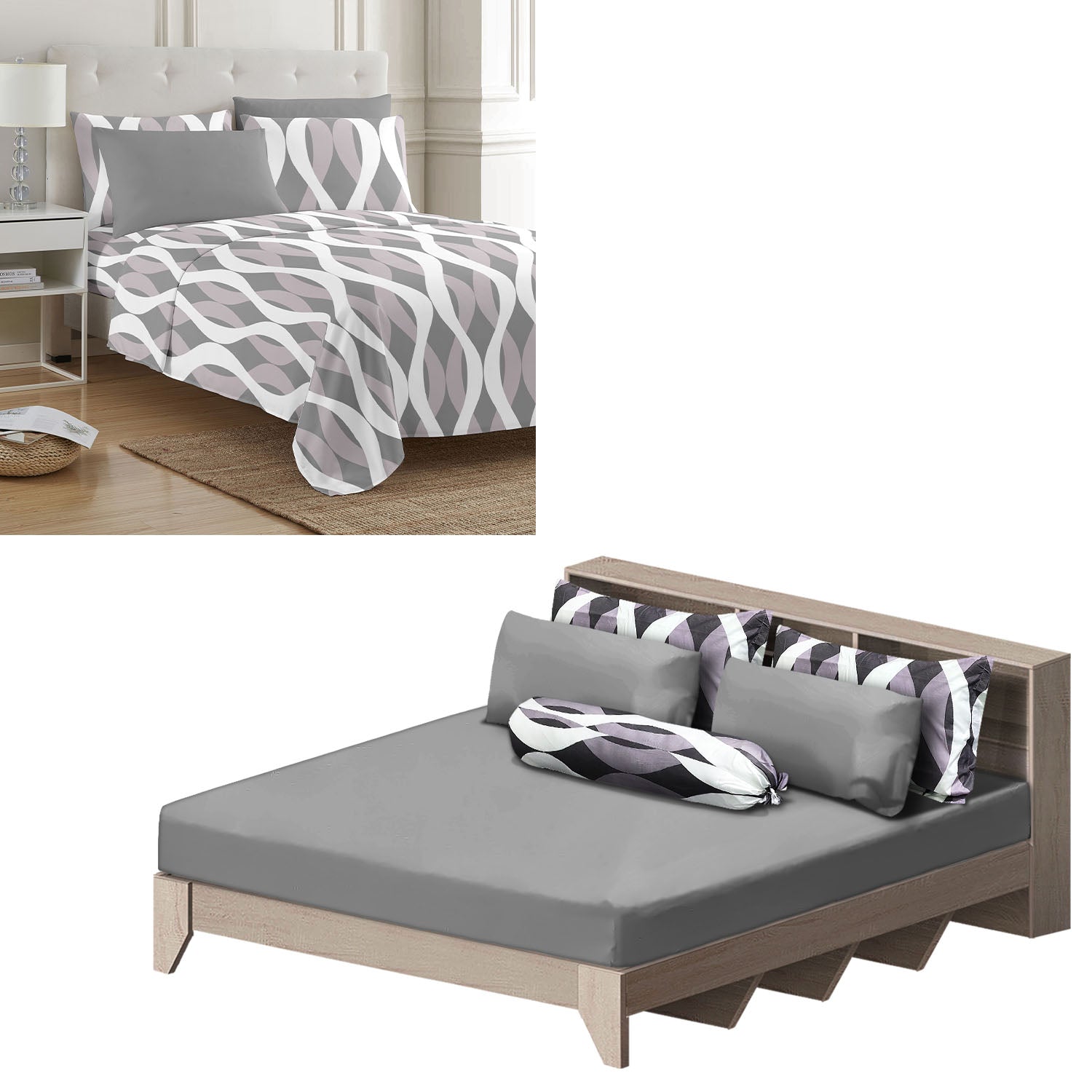 | Set Includes: | Duvet Cover (200 x 230cm) – X1 Fitted Sheet (180 x 200 + 29cm) – X1 Pillow Sham (47 x 74cm + 5cm) – x2 Pillowcase (47 x 74cm) – x2 Bolster Case (Ø22 x 90cm) - x1 |