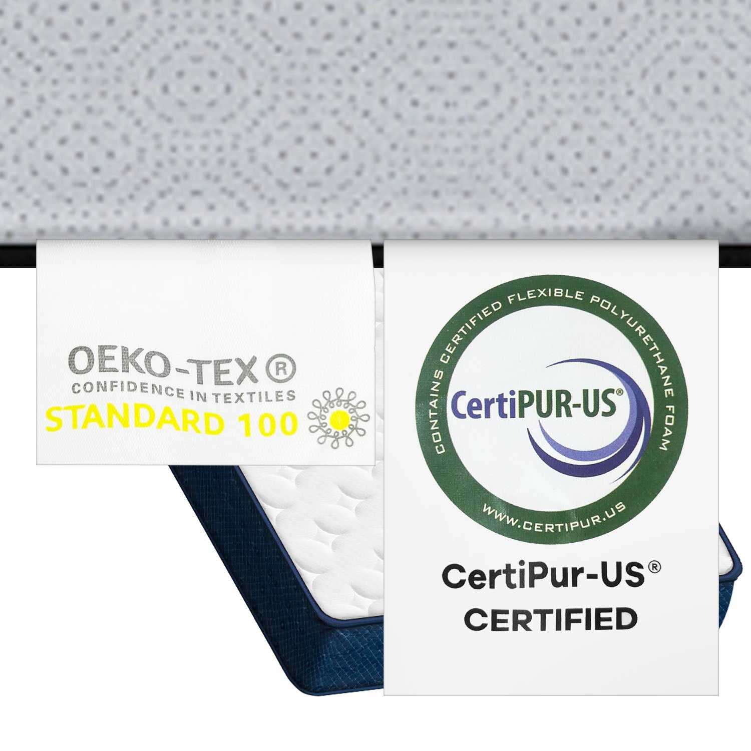 ➭ Convenient Roll-Pack: Mattress comes rolled for easy transport and setup. ➭ Breathable Knitted Fabric Cover: 240 g white knitted top fabric ensures airflow and a soft, skin-friendly surface. ➭ Multi-Layer Comfort Construction: Designed with multiple foam and fabric layers for balanced softness and support. ➭ Elegant Design: Finished with a blue knitted fabric border and additional 1 cm quilting foam for a refined, modern look. ➭ Durable & Supportive Base: Reinforced with cotton felt and hard non-woven fabric for mattress stability and shape retention. ➭ Pocket Spring System: 20 cm 2.1 mm pocket springs provide excellent body support, motion isolation, and long-lasting comfort. ➭ High-Density Foam & Quilting Layers: Dual 1.5 cm quilting foam layers and a 2 cm high-density foam layer enhance plush comfort. ➭ Certified Safe & Eco-Friendly: OEKO-TEX Standard 100 ensures the textile is free from harmful chemicals; CertiPUR-US Certified foam meets strict environmental, health, and safety standards. |
