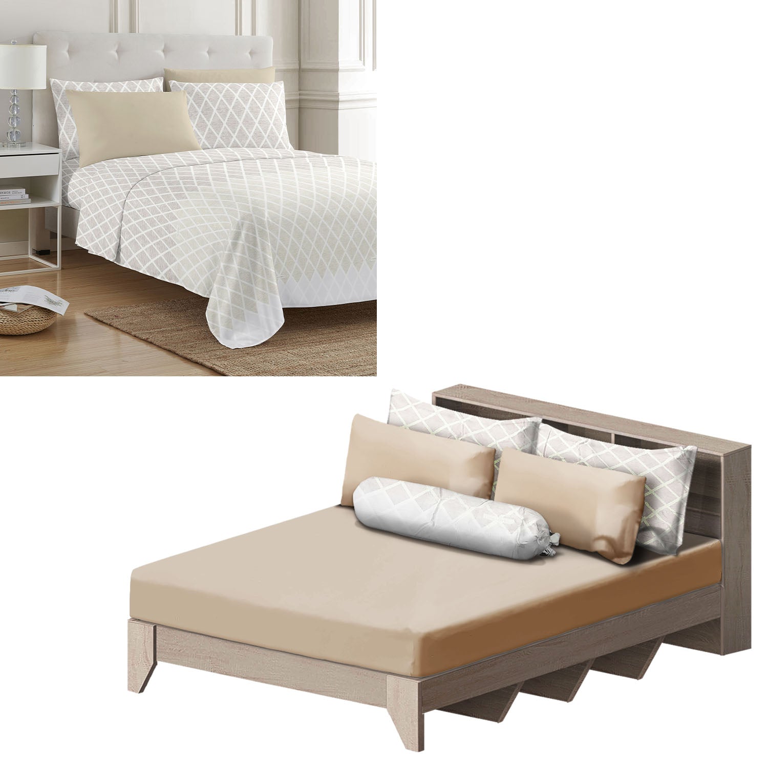 | Set Includes: | Duvet Cover (200 x 230cm) – X1 Fitted Sheet (150 x 200 + 29cm) – X1 Pillow Sham (47 x 74cm + 5cm) – x2 Pillowcase (47 x 74cm) – x2 Bolster Case (Ø22 x 90cm) - x1 |