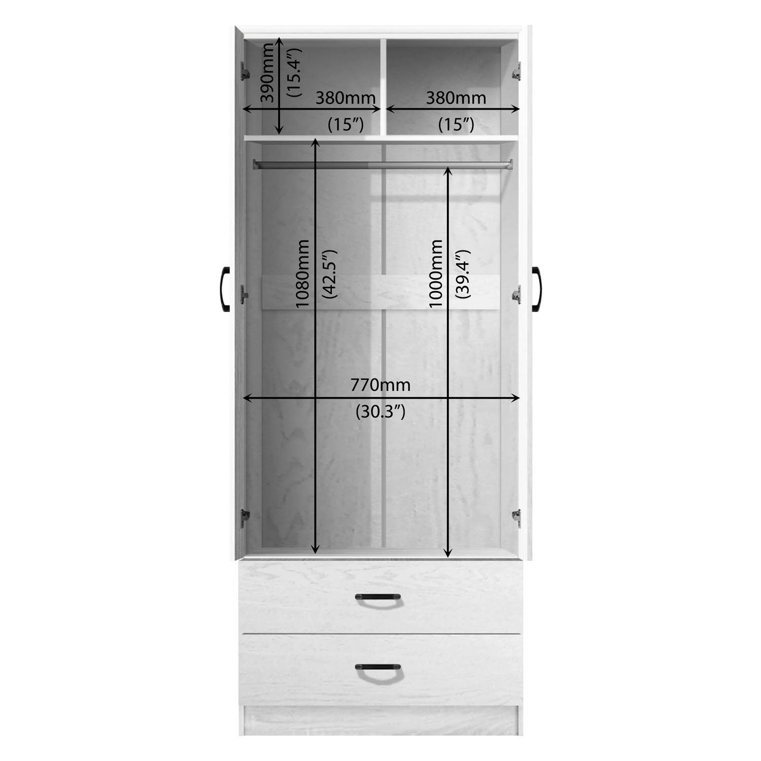➭ Sturdy Wooden Construction: Ensures long-lasting durability and reliable support. ➭ Two Drawers for Extra Storage: Perfect for socks, undergarments, or smaller items. ➭ Spacious 2-Door Design: Ample storage for clothes, accessories, and daily essentials. ➭ Wood Grain Texture: White color with a wood grain finish for a stylish, modern look. ➭ Practical & Functional Design: Well-organized layout to store clothes, accessories, and daily essentials efficiently. |