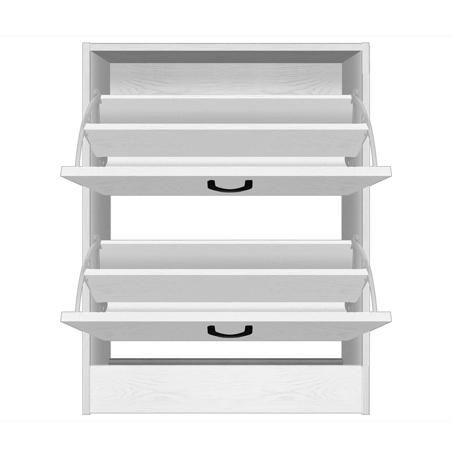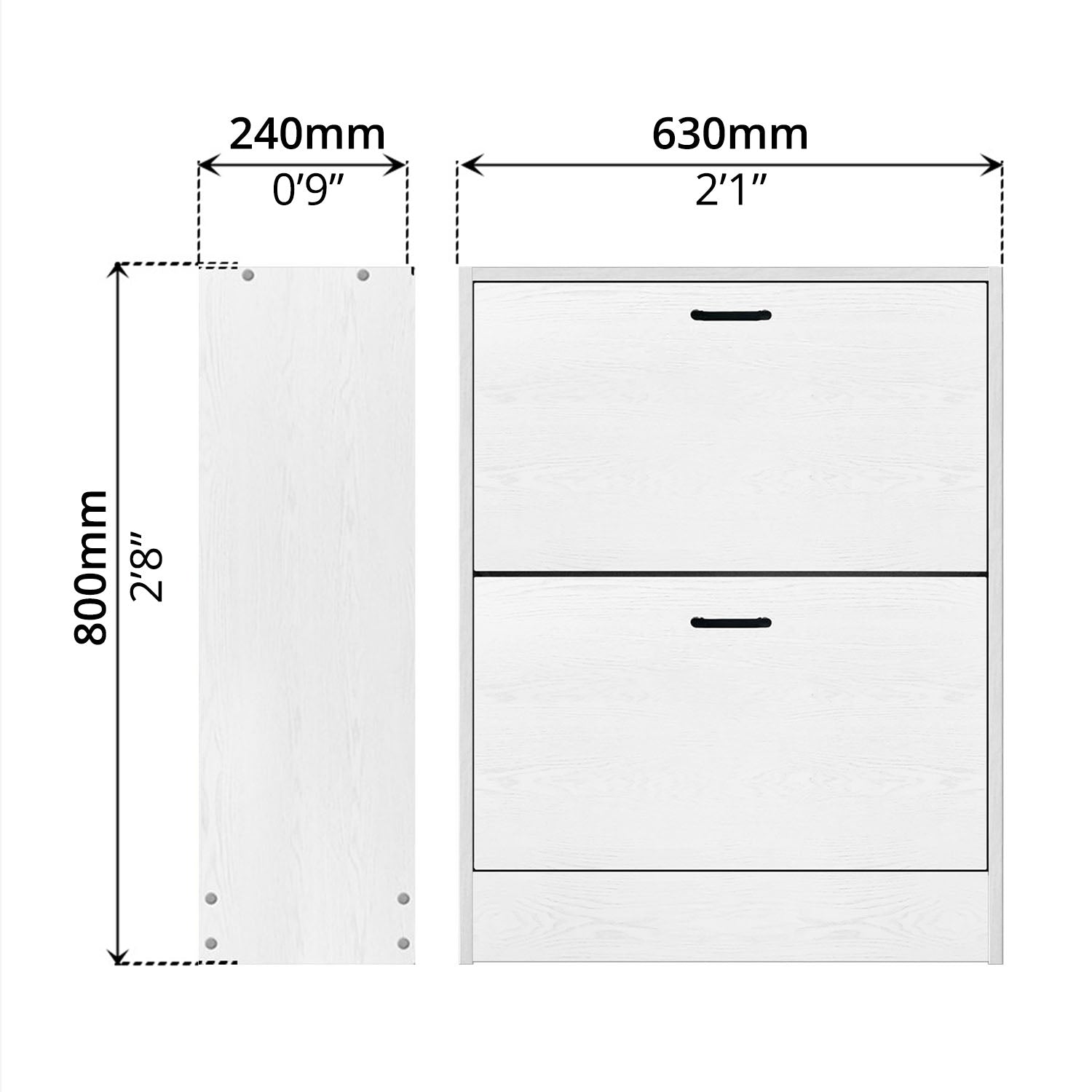 ➭ Organized Storage: Keeps shoes neatly arranged and easily accessible. ➭ 2 Flip-Down Compartments: Convenient storage for up to 12 pairs of shoes. ➭ Wood Grain Finish: White wood grain finish adds a stylish touch to any room. ➭ Sturdy Wooden Construction: Ensures long-lasting durability and reliable support. ➭ Space-Saving & Practical: Compact design fits easily in entryways, bedrooms, or closets. |