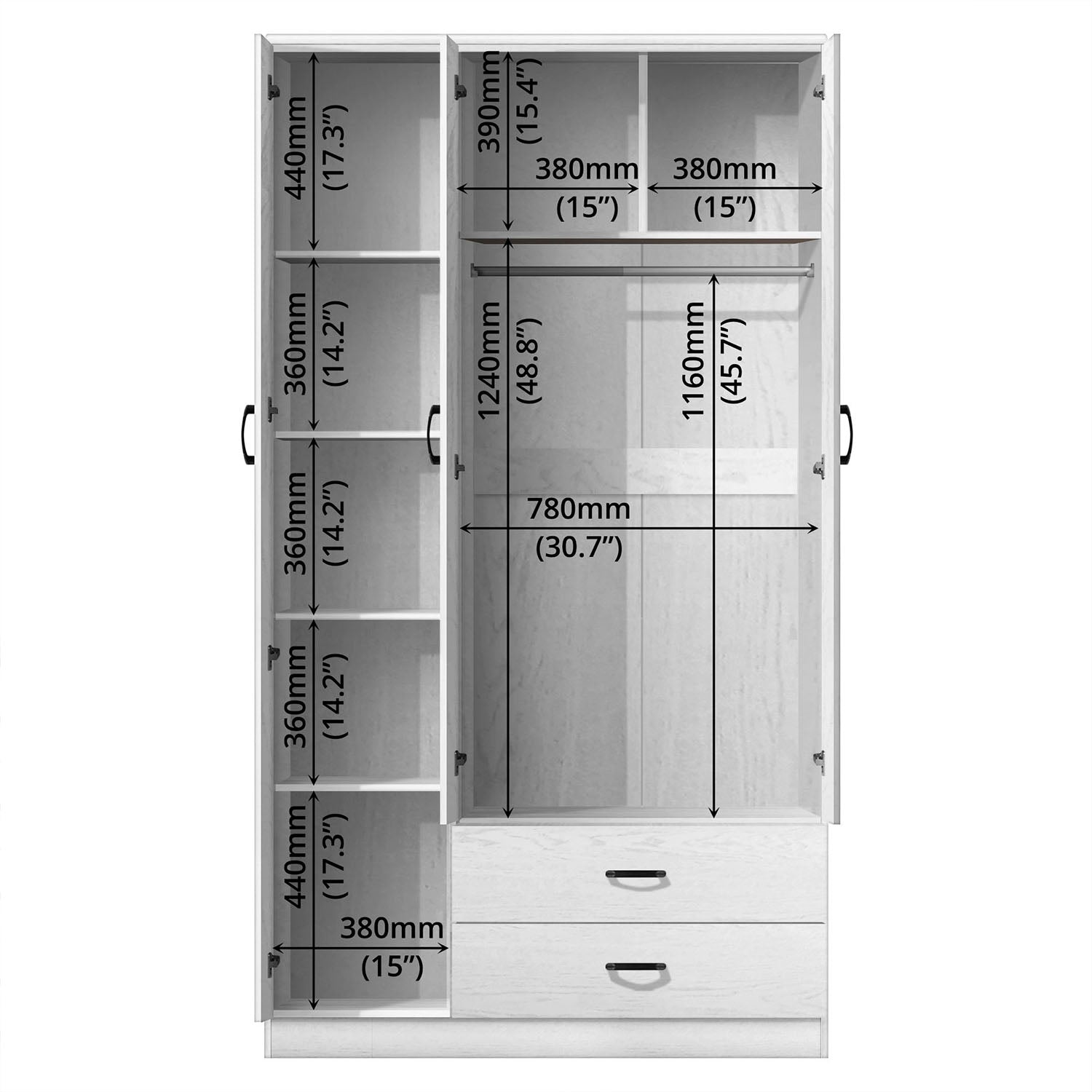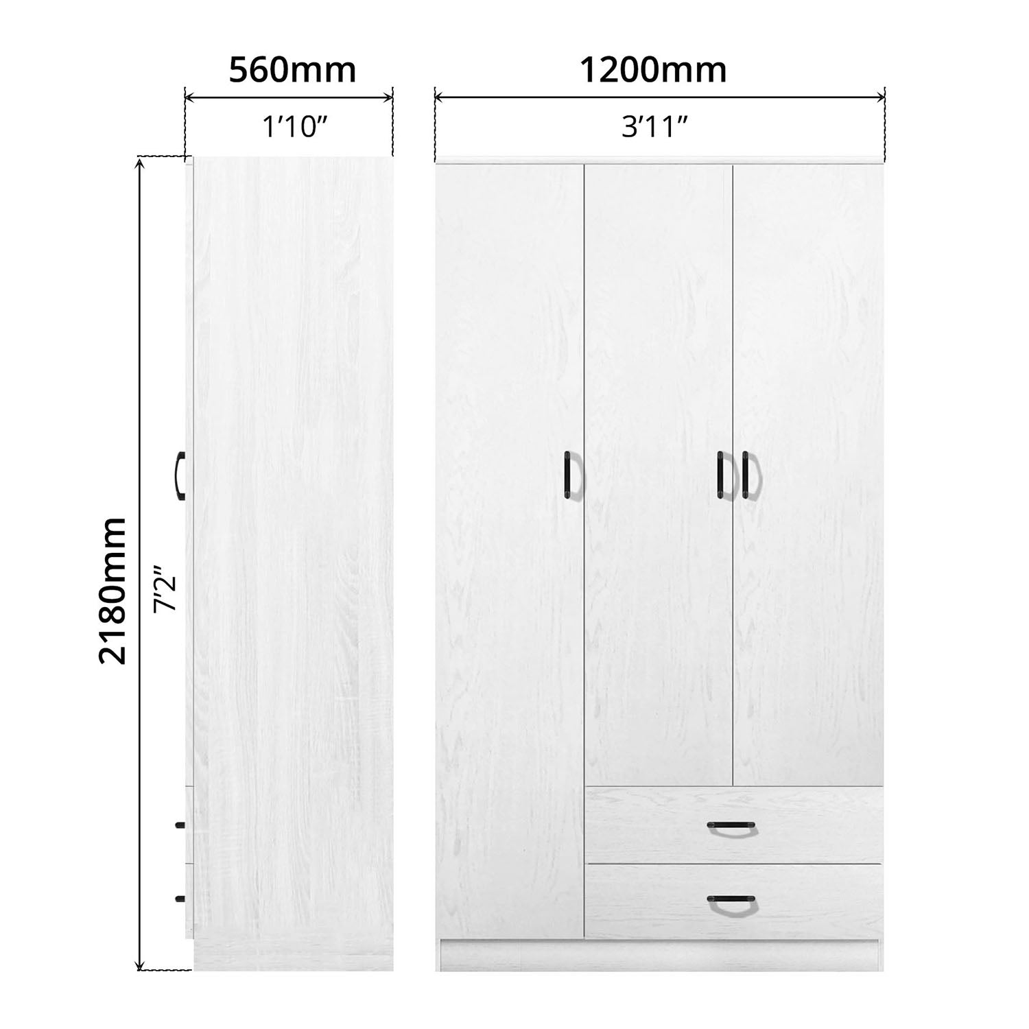 ➭ Sturdy Wooden Construction: Ensures long-lasting durability and reliable support. ➭ Two Drawers for Extra Storage: Perfect for socks, undergarments, or smaller items. ➭ Spacious 3-Door Design: Ample storage for clothes, accessories, and daily essentials. ➭ Wood Grain Texture: White color with a wood grain finish for a stylish, modern look. ➭ Practical & Functional Design: Well-organized layout to store clothes, accessories, and daily essentials efficiently. |