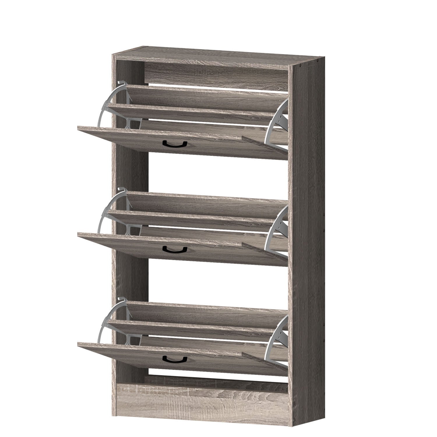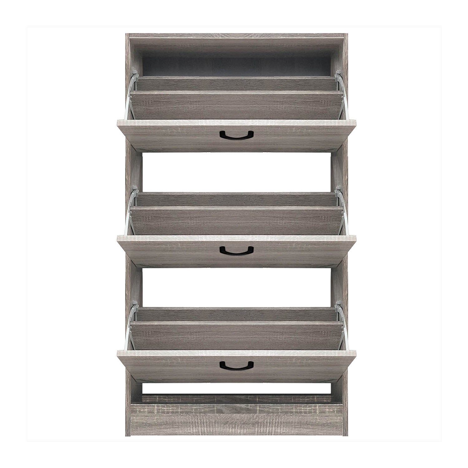 ➭ Organized Storage: Keeps shoes neatly arranged and easily accessible. ➭ 3 Flip-Down Compartments: Convenient storage for up to 18 pairs of shoes. ➭ Wood Grain Finish: Dark Brown wood grain finish adds a stylish touch to any room. ➭ Sturdy Wooden Construction: Ensures long-lasting durability and reliable support. ➭ Space-Saving & Practical: Compact design fits easily in entryways, bedrooms, or closets. |