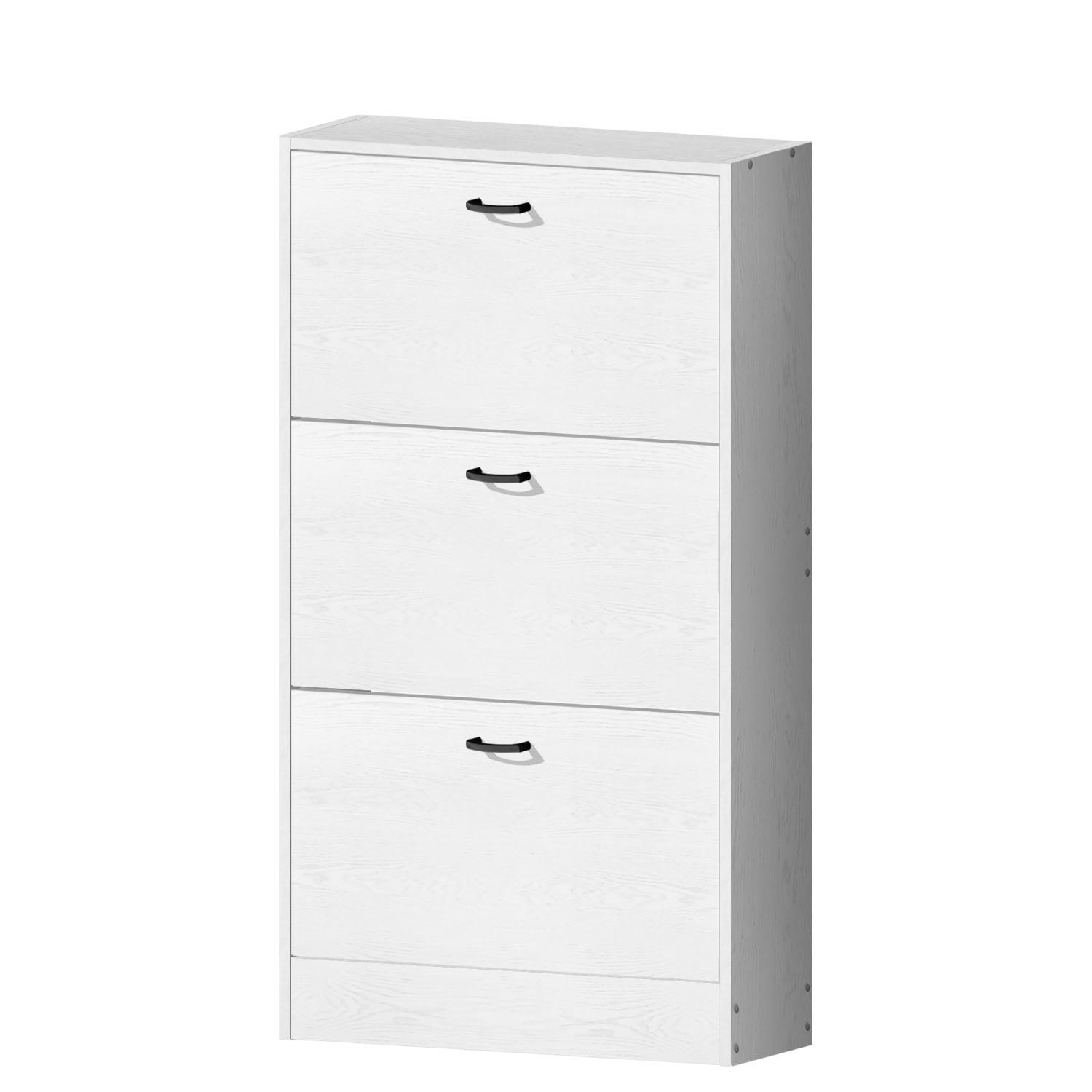 ➭ Organized Storage: Keeps shoes neatly arranged and easily accessible. ➭ 3 Flip-Down Compartments: Convenient storage for up to 18 pairs of shoes. ➭ Wood Grain Finish: White wood grain finish adds a stylish touch to any room. ➭ Sturdy Wooden Construction: Ensures long-lasting durability and reliable support. ➭ Space-Saving & Practical: Compact design fits easily in entryways, bedrooms, or closets. |