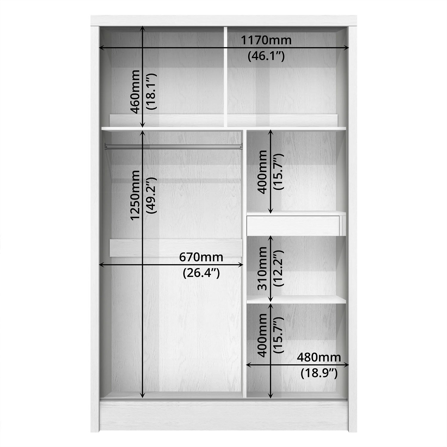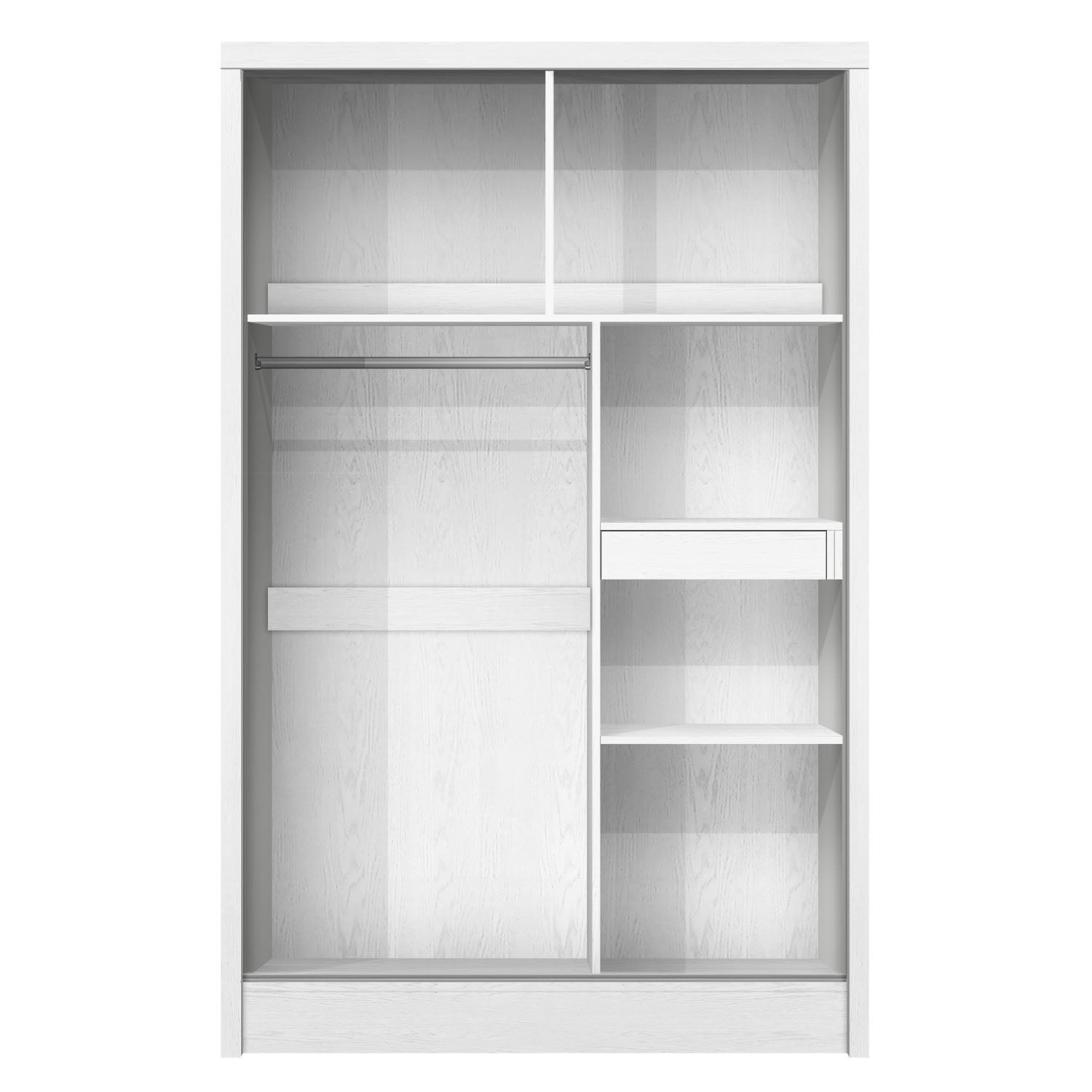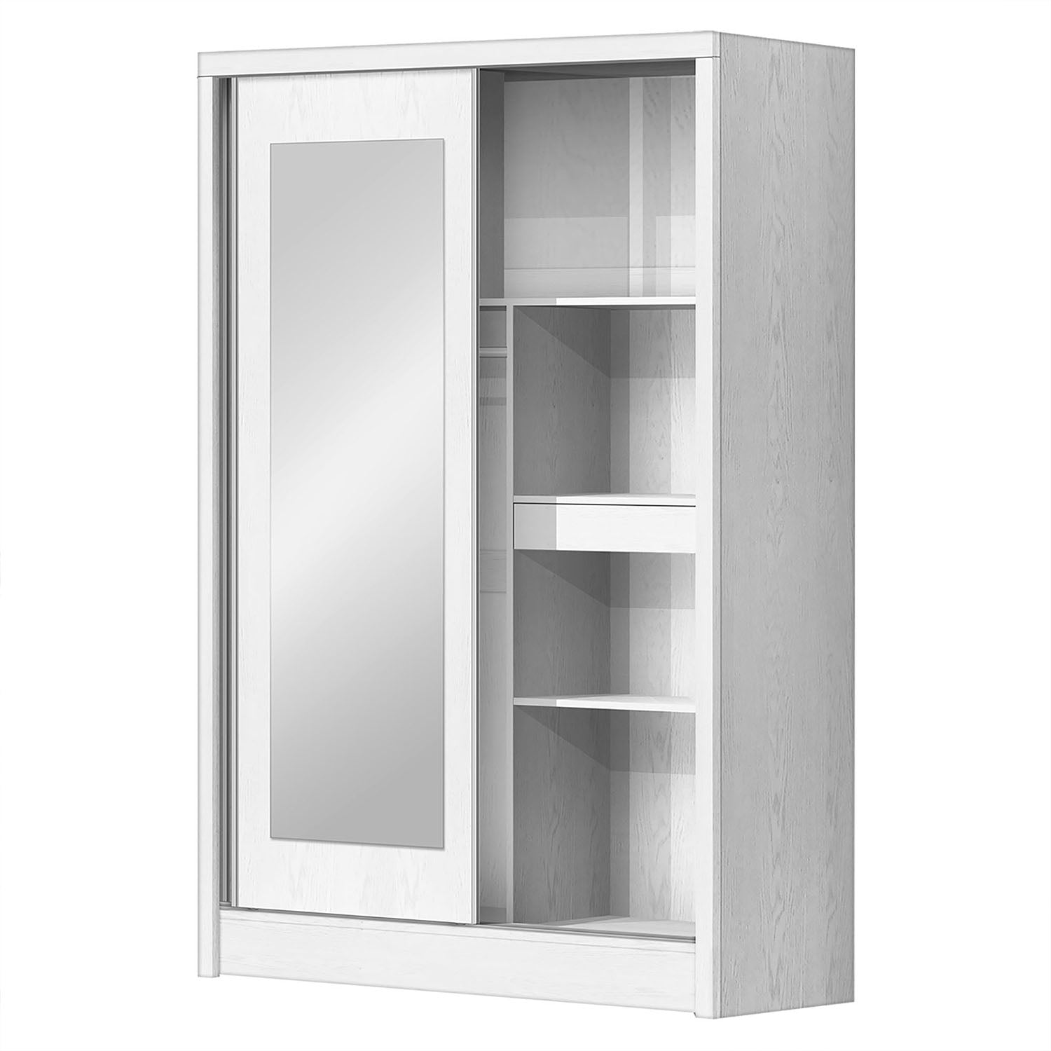 ➭ Sturdy Wooden Construction: Ensures long-lasting durability and reliable support. ➭ Sliding Door Design: Smooth sliding doors save space and add a modern look to your bedroom. ➭ Wood Grain Texture: White color with a wood grain finish for a stylish, modern look. ➭ Mirror & Drawer Included: Built-in mirror and one drawer provide convenience and extra storage. ➭ Practical & Functional Design: Well-organized layout to store clothes, accessories, and daily essentials efficiently. |