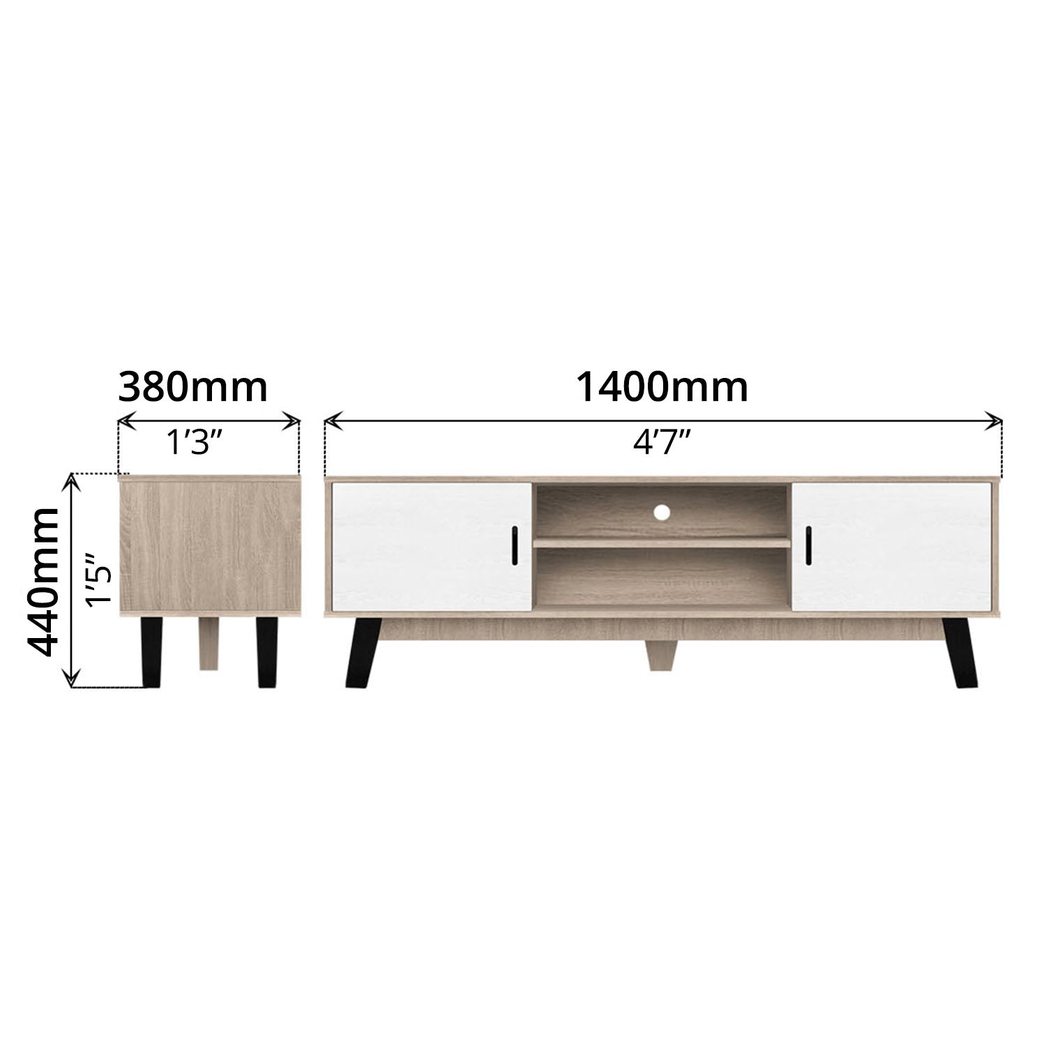 ➭ Sturdy Wooden Construction: Ensures long-lasting durability and reliable support. ➭ Supports TVs up to 58”: Ideal for flat-screen TVs while maintaining a sleek and functional setup. ➭ Ample Storage Space: Includes compartments for media devices, remotes, and accessories. ➭ Two-Tone Finish: White and brown color combination with natural wood grain texture for a modern, stylish look. ➭ Compact & Functional: Sleek design provides practical storage while complementing any living room setup. |